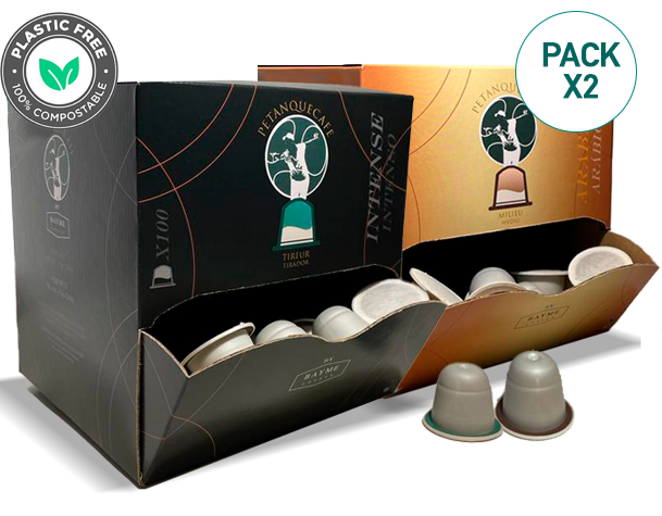 200 Cápsulas compostables de café. Combina dos cajas de los tres tipos de Petanquecafe a tu gusto.